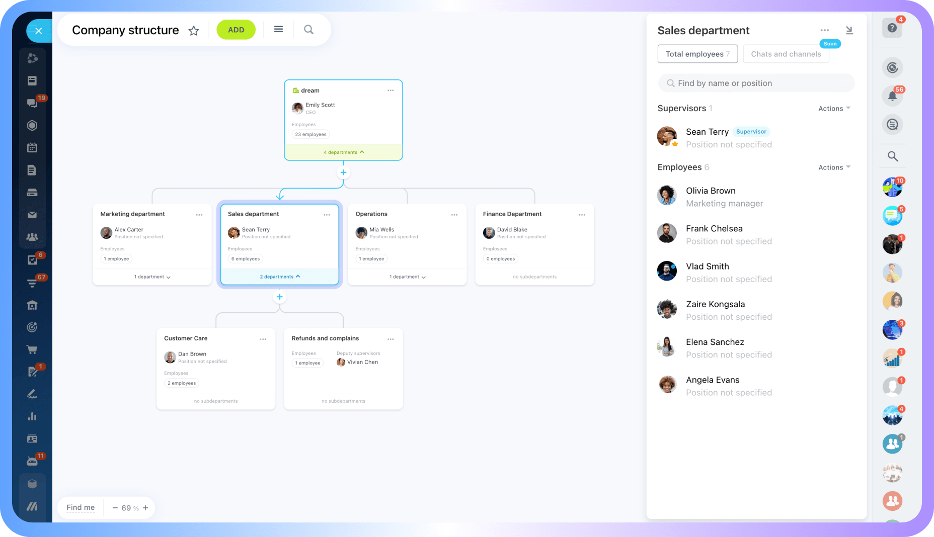 La sección de Estructura de la Compañía, visualmente actualizada y completamente renovada, te permite gestionar tu jerarquía interna y los permisos de acceso más fácil que nunca.