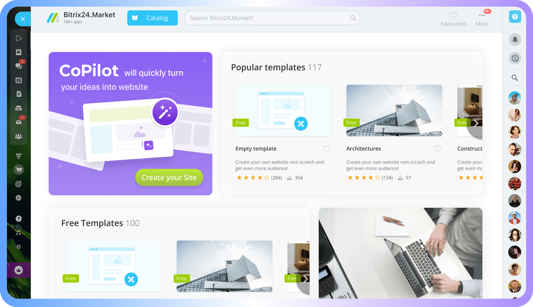 El nuevo Bitrix24 Sinergia te trae el futuro del trabajo en equipo: una combinación perfecta de herramientas de colaboración probadas y el poder de la IA. Trabaja junto con usuarios externos en Collabs, usa Tableros para generar ideas creativas, extrae información útil de tus llamadas con CoPilot Follow-Up y mantén tu calendario completo con Reservas online.